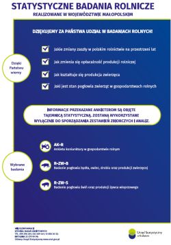 Urząd Statystyczny w Krakowie informuje, iż będzie prowadził liczne badania ankietowe gospodarstw domowych, rolnych, przedsiębiorstw i instytucji na terenie województwa małopolskiego. Podstawę prawną realizacji badań statystycznych stanowi ustawa z dnia 29 czerwca 1995 r. o statystyce publicznej (Dz.U. z 2020 roku poz. 443, z późn. zm.) oraz coroczne rozporządzenie Rady Ministrów w sprawie programu badań statystycznych statystyki publicznej.