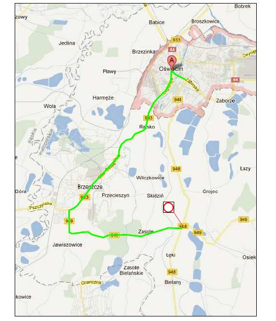 Objazd poprowadzony będzie drogą wojewódzką Nr 933 ora drogą wojewódzką 949.