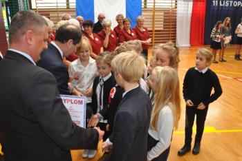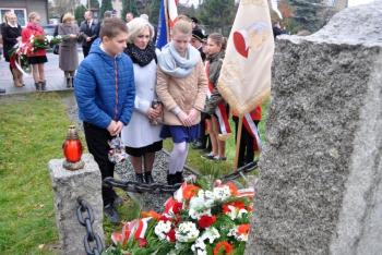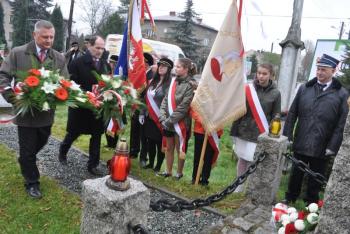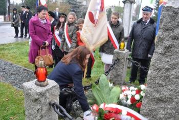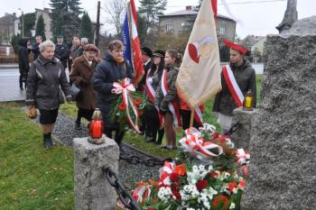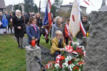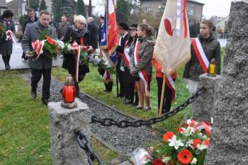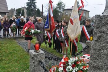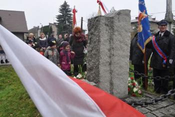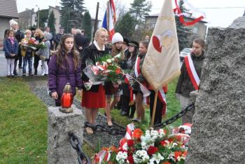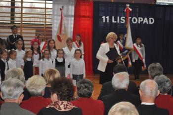 Następnie o zabranie głosu poprosiła Mirosława Smolarka. Wygłosił on okolicznościowe przemówienie w imieniu nieobecnego wójta Alberta Bartosza, któremu udział w uroczystościach niepodległościowych uniemożliwiły problemy zdrowotne.