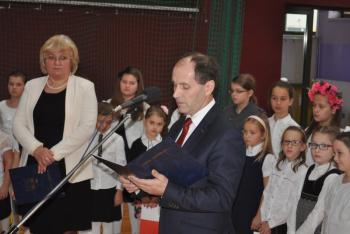 Zastępca wójta przypomniał o wydarzeniach sprzed 97 lat, które doprowadziły do odzyskania przez Polskę niepodległości.  Tłumaczył czym dziś wyraża się postawa patriotyczna.