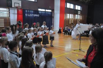 W części artystycznej wystąpiły dzieci ze Szkoły Podstawowej im. Jana Pawła II w Rajsku. Pod kierunkiem nauczycieli: Małgorzaty Rolewskiej, Marty Kotyli oraz Roberta Rydzonia zaprezentowały ciekawy program nawiązujący do okresu od upadku I Rzeczypospolitej, poprzez powstańcze zrywy, aż po podniesienie się z kolan po 123-letniej niewoli i odzyskanie pełnej wolności.