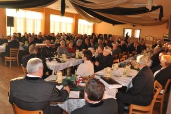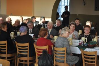 Obecny na sali ks. Józef Święcicki, proboszcz parafii w Brzezince, który wcześniej odprawił mszę w intencji braci górniczej, uspokoił sumienia biesiadników mówiąc, że choć uroczystość ma miejsce w piątek, kiedy katolików obowiązuje wstrzymanie się od potraw mięsnych, w tym wyjątkowym dniu dyspensa rozciąga się na całą brać górniczą.