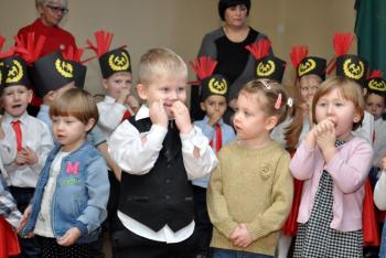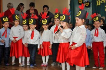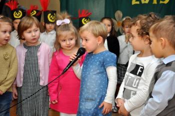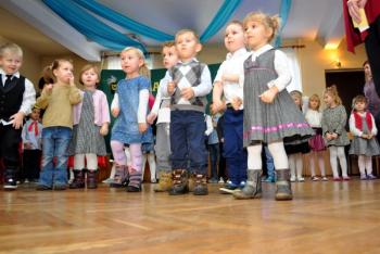 Następie głos zabrała dyrektor miejscowego przedszkola Leokadia Kukla. Powitała obecnych na sali górników kierując do nich serdeczne życzenia. Chwię później przed zebranymi zaprezentowały się przedszkolaki w programie artystycznym nawiązującym do ciężkiej pracy górników. Pięknie zatańczyły i złożyły gwarkom szczere życzenia. Występy dzieci goście nagrodzili brawami oraz słodkościami.