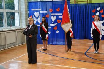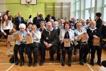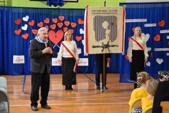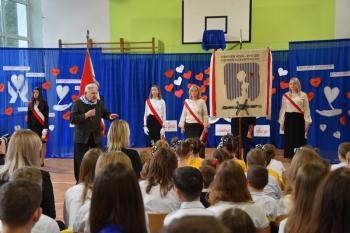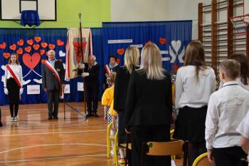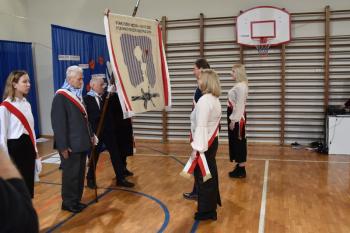 Poczet sformowany przez nauczycieli odebrał sztandar z rąk Patronów. Następnie Agata Kowol, do niedawna dyrektor Szkoły Podstawowej w Brzezince, przedstawiła historię szczególnej więzi, która od kilku dekad łączy ofiary KL Auschwitz i uczniów. Wójt Mirosław Smolarek, dziękując byłym więźniom za przyjęcie zaproszenia, przywołał słowa Mariana Turskiego o obojętności, która jest źródłem zła. Byłym więźniom za żywą lekcję historii podziękował również sołtys Andrzej Ryszka.