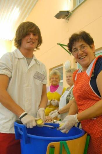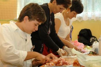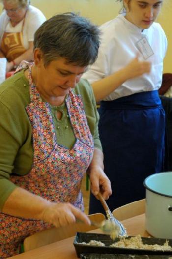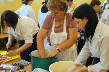 Małgorzata Rozner, właścicielka gospodarstwa agroturystycznego w Grojcu wraz z paniami z miejscowego Koła Gospodyń Wiejskich i młodymi adeptami sztuki kulinarnej z oświęcimskiego „Ekonomika” przygotowała tradycyjne prażone. – Jedni uczą się od drugich. Wspólnie przygotujemy prażone, może uda nam się nie spalić. Jeśli wszystko będzie w porządku, jadła starczy dla 50 osób – śmieje się pani Małgorzata.