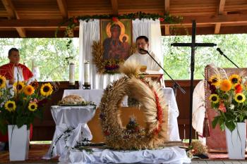 Świętowanie rozpoczęła msza polowa, celebrowana na terenie placu zabaw w Pławach, podczas której poświęcony został dożynkowy wieniec a także bochny chleba. Następnie, nadszedł czas na przejazd pod Dom Ludowy, gdzie miała mieć miejsce dalsza część imprezy.