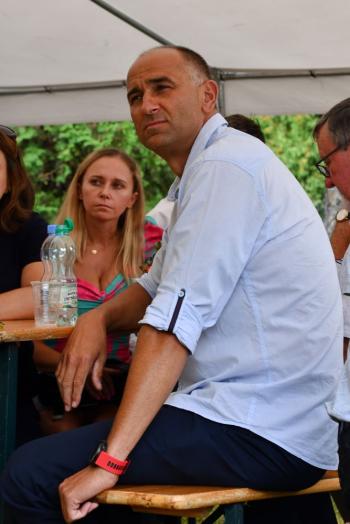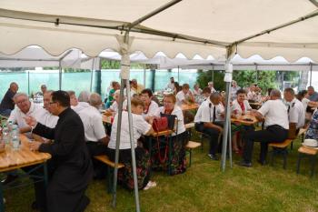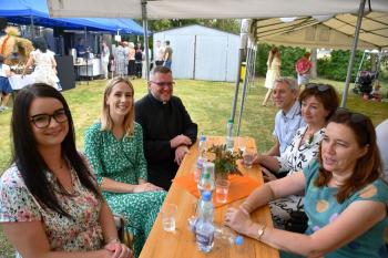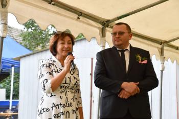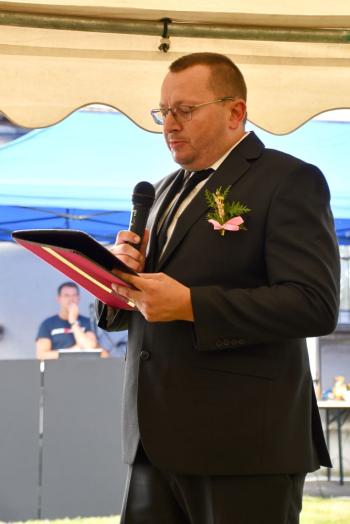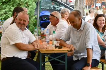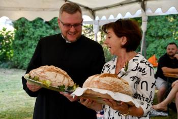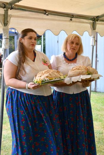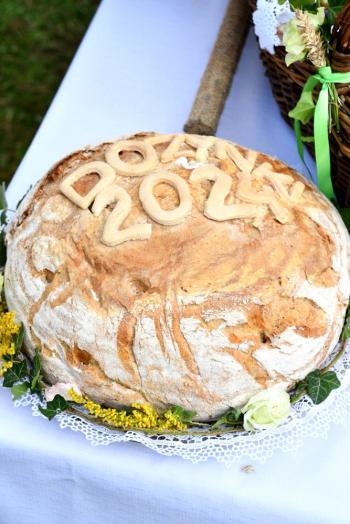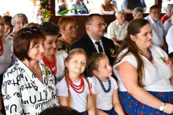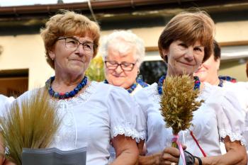 Gdy kolorowy korowód z sołtysem Krzysztofem Harmatą dotarł na miejsce, rozpoczęło się część oficjalna. O objęcie roli gospodarzy dożynek poproszeni zostali zastępca wójta gminy Oświęcim Halina Musiał oraz ks. wikary Artur Micorek.