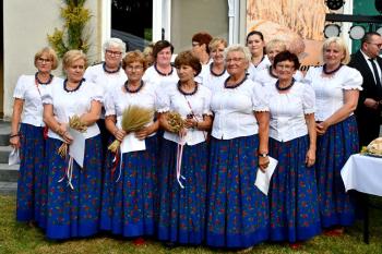 Nie mogło również zabraknąć części artystycznej. Panie z KGW Pławy, swoim występem wywołały uśmiech na twarzach zebranych i wprawiły wszystkich w dożynkowy nastrój.