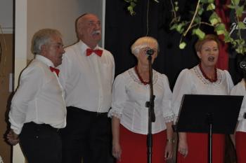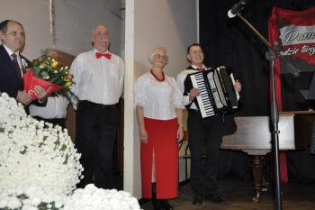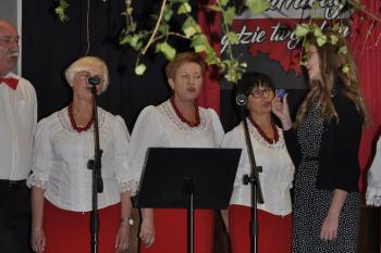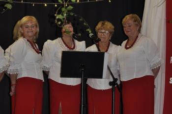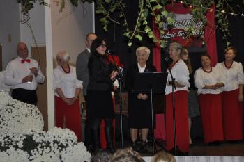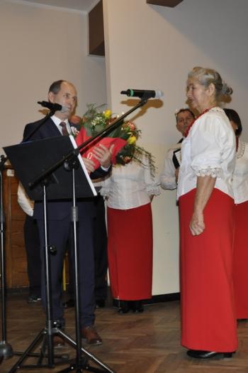 Wójt Mirosław Smolarek podziękował Porębianom za wzruszający występ, wręczając bukiet kwiatów kierującej zespołem Wandzie Heród. Wyrazy wdzięczności i uznania złożyli też śpiewakom działacze Rejonowego Związku Rolników, Kółek i Organizacji Rolniczych w Bielsku-Białej: Danuta Kożusznik i Waldemar Pieczara.