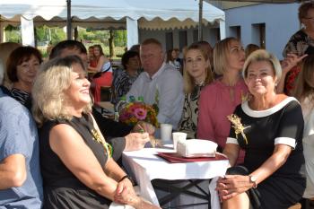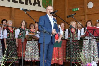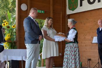 Swoje przemówienie miała również Grażyna Kopeć, wiceprzewodnicząca Rady Powiatu w Oświęcimiu, która w tym dniu, podczas sołeckich dożynek reprezentowała starostę oświęcimskiego oraz radnych powiatowych. Na scenie odczytała list od starosty z najlepszymi życzeniami dla wszystkich na czas świętowania dożynek.