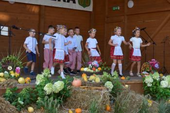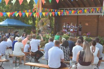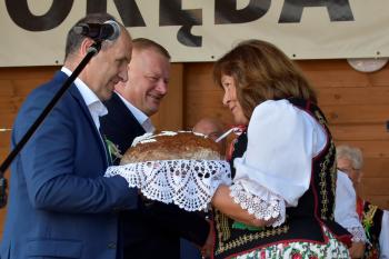 Na scenie miało także miejsce przekazanie chlebów dożynkowych wójtowi Mirosławowi Smolarkowi oraz przewodniczącemu rady Adamowi Nowotarskiemu.