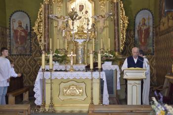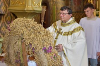 Mszę świętą dziękczynną za uzyskane plony odprawił ks. Stanisław Sadlik, proboszcz parafii pw. św. Bartłomieja w Porębie Wielkiej. Tradycyjny korowód dożynkowy przeszedł od Domu Ludowego do pięknego, zabytkowego, drewnianego kościoła, gdzie miała miejsce uroczysta Eucharystia. Tam, podczas mszy świętej kapłan poświęcił przyniesiony chleb i wieniec dożynkowy. Był to ważny element tradycyjnego ceremoniału.