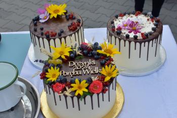 Gospodarze dożynek przygotowali słodką niespodziankę dla przybyłych na Święto Plonów. Marzena Jarnot upiekła trzy torty, którymi poczęstowano wszystkich obecnych.
