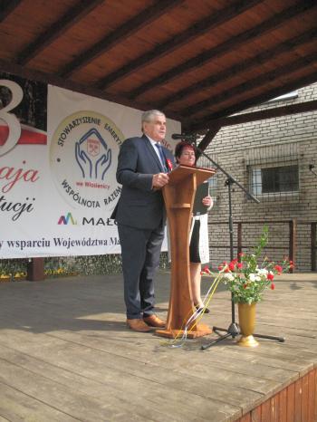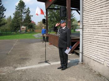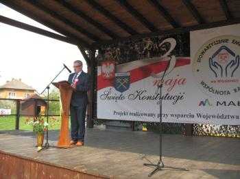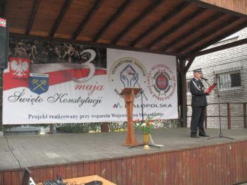 Rozpoczęła się parada Strażacka, przemarsz, meldunki odegranie hymnu narodowego oraz wciągnięcie flagi na maszt. Po czym Sołtys Władysław Zaliński wygłosił referat dotyczący Konstytucji 3 Maja i jej znaczenia dla historii Polski. W wielkim skrócie można przedstawić znaczenie tego referatu: