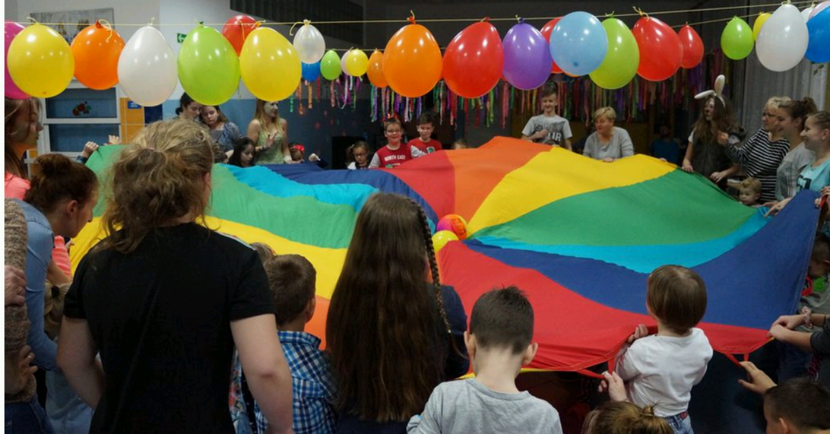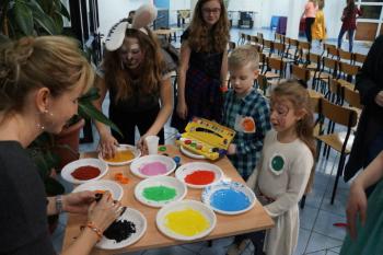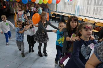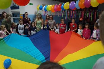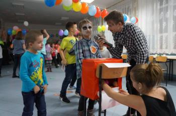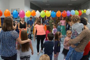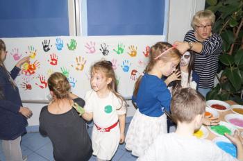 Spotkanie rozpoczęło się od inscenizacji o żabkach, w wykonaniu młodzieży. Dla Milusińskich przygotowano słodki poczęstunek i zaproszono do wspaniałej zabawy tanecznej (nie zabrakło „kaczuszek” i znanej piosenki „Jedzie pociąg z daleka..”). Dodatkowymi atrakcjami, które niezwykle spodobały się dzieciom były, m.in: malowanie twarzy, tworzenie kolorowego obrazu na płótnie pomalowanymi dłońmi, a także zabawy z kolorową chustą. Wszystko odbywało się pod opieką nauczycieli i młodzieży ze szkolnego wolontariatu. Na zakończenie każdy z uczestników odebrał pamiątkowe zdjęcie (wykonane podczas spotkania) oraz kolorowy balonik.