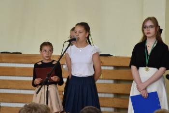 Następnie absolwenci zaborskiej szkoły złożyli ślubowanie, a najlepsi spośród nich otrzymali dyplomy, medale i skierowane do rodziców listy gratulacyjne. Ostatnim akcentem zakończenia roku szkolnego był artystyczny występ przygotowany przez uczniów młodszych klas.