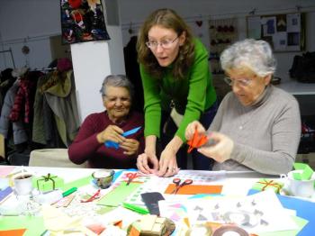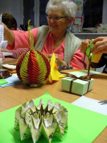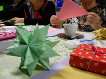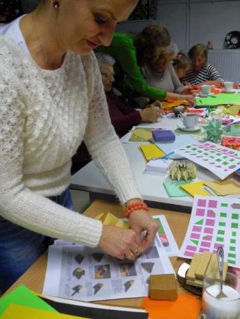 I znów matmę zaklęto w papierowym formacie wielkości A4, z którego wyczarowywano świąteczne gadżety: gwiazdy, prezentowe pudełeczka, gwiazdki, bombki. Między jednym a drugim złożeniem kartki, przywoływano swoje szkolne wspomnienia związane z matematyką. Jedni pamiętali nauczycieli, inni sypali konkretnymi przykładami matematycznych „wpadek” i lapsusów. W latach szkolnych jedni matmę lubili, inni mieli z nią kłopoty, za to na świątecznych warsztatach manualna matma wszystkim szła jak z płatka.