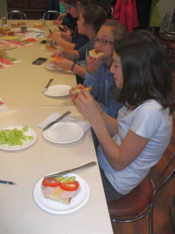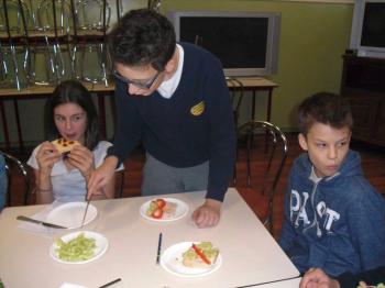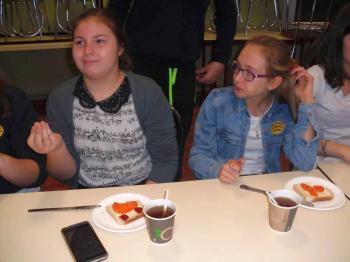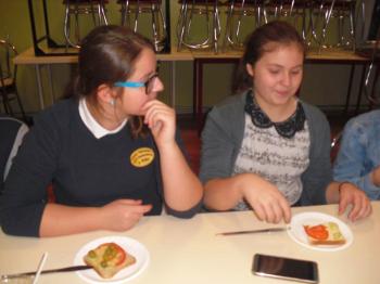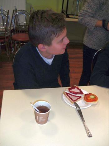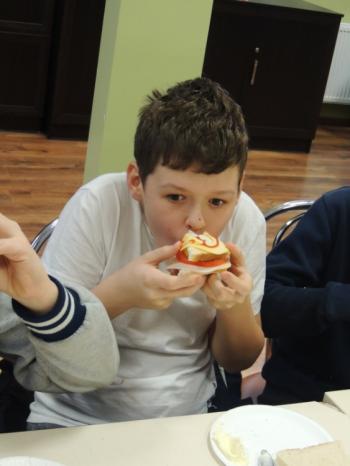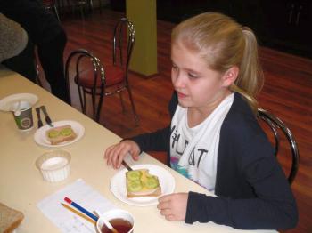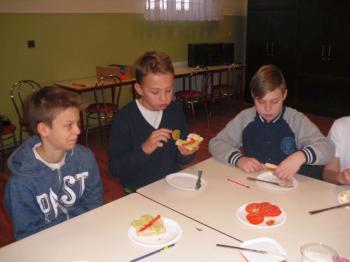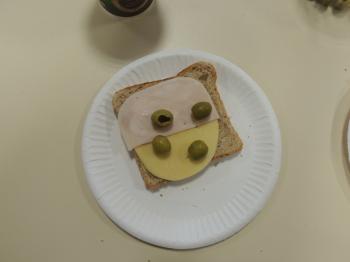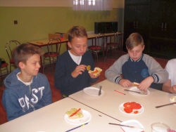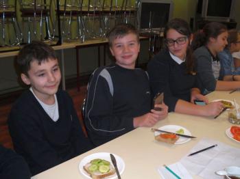 W projekcie mPotęgi było miejsce na kulinarne eksperymenty tego typu. Chcieliśmy przez to pokazać, że matematyką można się zajmować na różnych płaszczyznach życia: szkolnym, domowym, kuchennym i nie tylko. Układaliśmy różne wzory na kanapkach z klasą VI „B”, używając do tego szynki, sera, pomidorów, ogórka i oliwek. Wszyscy świetnie się przy tym bawili, a przy tym odkryli, że nawet pod powierzchnia kanapki czai się matematyka… No i najważniejsze- wszyscy wyszli z zajęć z pełnymi brzuchami.