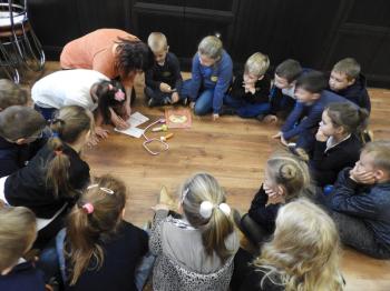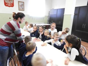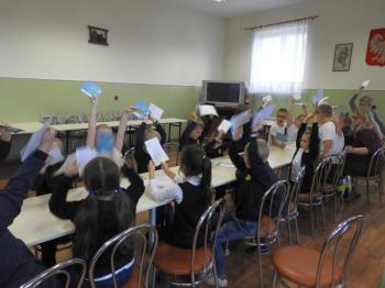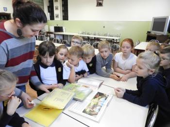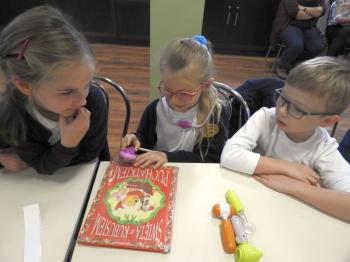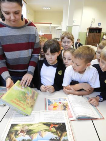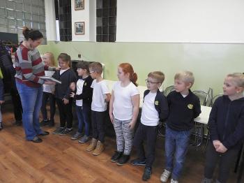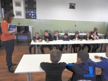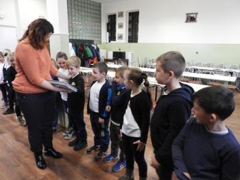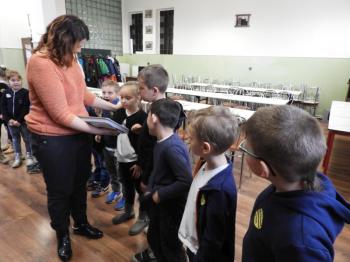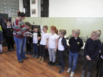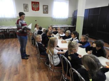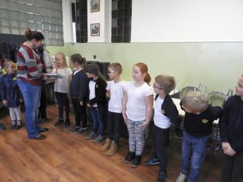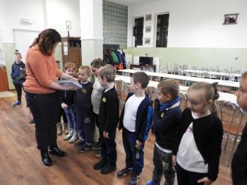 Obie klasy pierwsze grojeckiej szkoły zostały uroczyście pasowane na czytelników Biblioteki w Grojcu. Musieli najpierw przebrnąć przez poważny test wiedzy o tym, co z książką robić należy, a czego absolutnie robić nie wolno. Trzeba też było troszkę pogłówkować, aby znaleźć ukryte prośby książek do dzieci, wykazać się odrobiną wyobraźni podczas badania chorych, nieszanowanych książek, a także świetnie się bawić podczas wspólnego czytania Brzechwy.