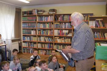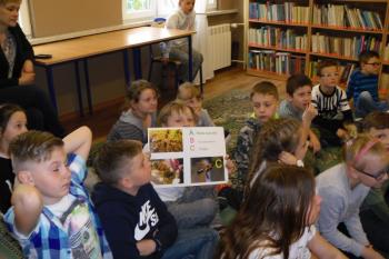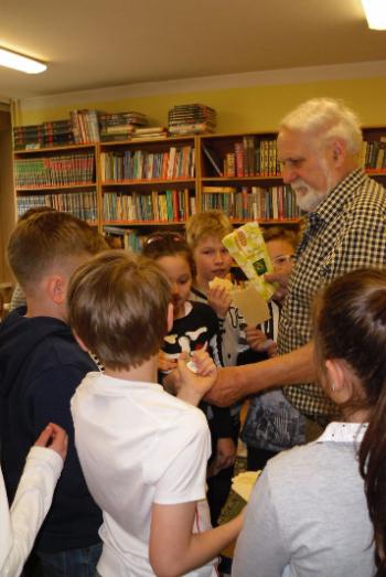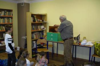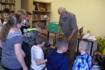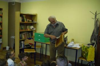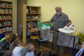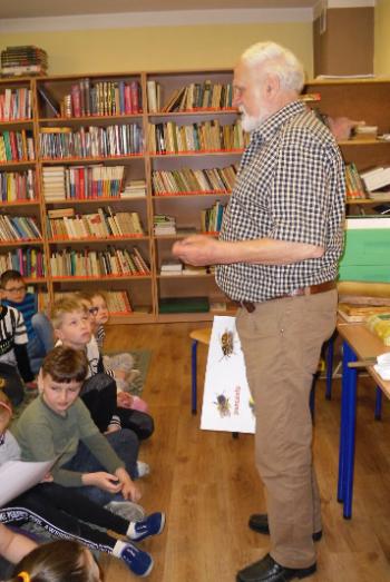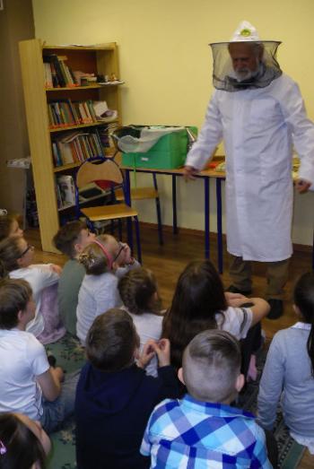Wiosna w pełni rozkwitu; wszędzie zielono i kolorowo. Promiennie uśmiechnięte dzieci zawitały dzisiaj do biblioteki w Rajsku na "zielone" spotkanie w ramach projektu "Zielone wędrówki zielonych dzieciaków". Niecodzienny gość, pan Stanisław Kotlarczyk, długoletni prezes Koła Pszczelarzy odwiedził nasze progi i bardzo ciekawie opowiadał uczniom klasy III Szkoły Podstawowej o życiu pszczół.