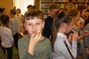 Wszystkie dzieci były zgodne, że miód rzepakowy pokonał smakiem miód wielokwiatowy.