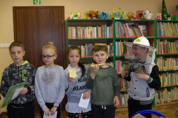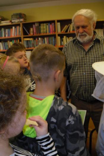 Ciekawostki: jak długo żyje królowa, ile składa jajeczek, czy opuszcza ul, czy można się uodpornić na użądlenia pszczół i wiele, wiele innych stały się udziałem wszystkich uczestników spotkania. Oczami wyobraźni dzieci widziały rabunki między ulami i tańce miododajnych owadów. Pytaniom nie było końca.