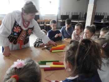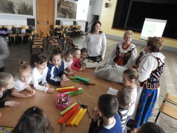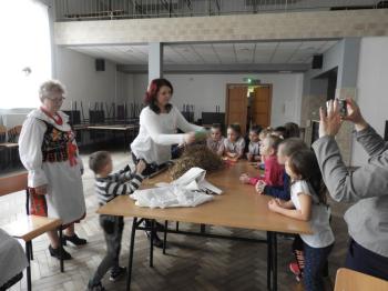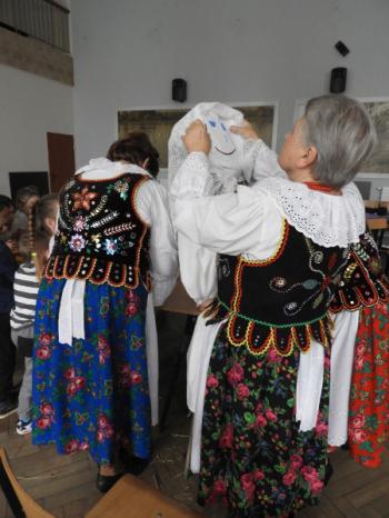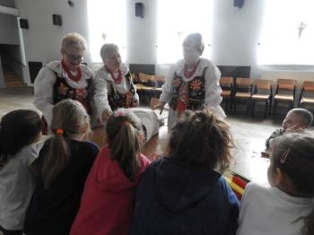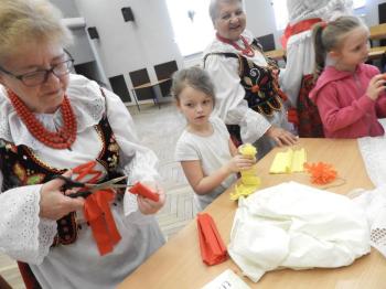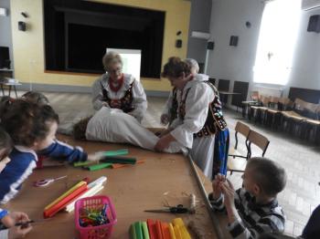 A któż może najlepiej opowiadać o zwyczajach i tradycjach ludowych? Panie z Koła Gospodyń Wiejskich w Grojcu- to się wie! Panie Stanisława Bliźniak, Genowefa Kubiesa oraz Danuta Mrozik przybyły dziś do Domu Ludowego w Grojcu, na zaproszenie Biblioteki, aby wspólnie z dziećmi wykonać tradycyjną kukłę.