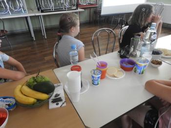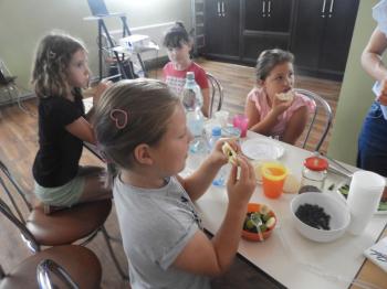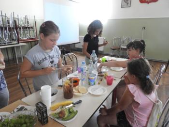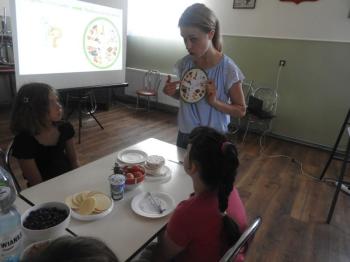 Poznaliśmy piramidę żywieniową, dowiedzieliśmy się też co mamy spakować do naszej śniadaniówki, by nasze mózgi pracowały wydajnie. Mogliśmy także własnoręcznie przyrządzić nasze zdrowe przekąski: kanapki na chlebku ryżowymi i jogurt naturalny z owocami i orzechami.
