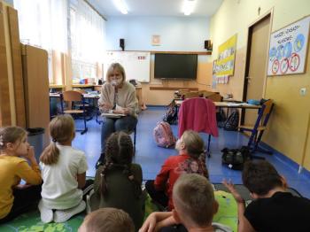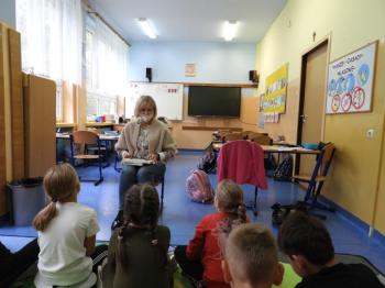 Tak też się stało na zakończenie spotkania. Z wierszy „Lampka nocna” i „Biblioteka” do dzieci mrugały zaprzyjaźnione czytanie i wyobraźnia.