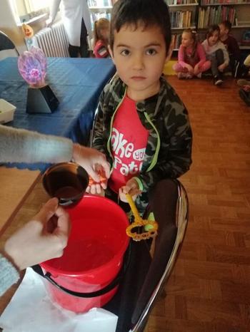 Na zajęciach dzieciaki miały okazje dowiedzieć się czym są Andrzejki, skąd wywodzi się to święto i jak jest obchodzone w Polsce. Po filmie edukacyjnym, dzieci odpowiadały co zapamiętały z filmu i czego ciekawego się dowiedziały. Następnie każde dziecko losowało z koszyczka wróżbę - wróżby były śmieszne oraz takie, które rozbudzają kreatywność. Po każdej wróżbie głośno dzieci biły brawa, śmiały się i chwaliły wylosowanymi przepowiedniami. Potem przyszła kolej na odrobinę magii: dzieci podchodziły do świecącej kuli aby, przy zamkniętych oczach, pomyśleć swoje życzenie.