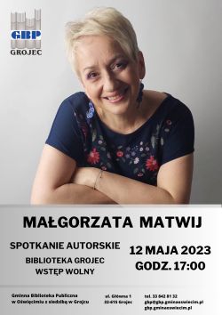 W Tygodniu Bibliotek (8-15 maja) pragniemy zaprosić Państwa na spotkanie autorskie z pisarką, Małgorzatą Matwij. Szczegóły na plakatach.