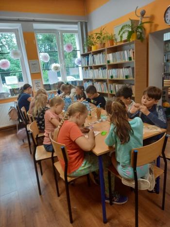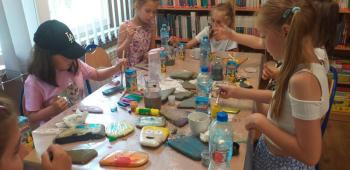Wszystko, co dobre szybko się kończy –to wiadomo. Zajęcia wakacyjne, organizowane przez Bibliotekę również dobiegły końca. Atrakcji było co niemiara: plener rysunkowy z Tamarą Łempicką oraz zdobienie kamieni w Bibliotece w Rajsku, zajęcia na świeżym powietrzu w Brzezince, bajkowe kino w filii we Włosienicy oraz warsztaty krawieckie w Bibliotece w Porębie Wielkiej.