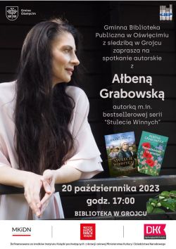 Zapraszamy na spotkanie z niezwykłą pisarką, Ałbeną Grabowską, której najbardziej znaną powieścią jest Stulecie Winnych. Spotkanie odbędzie się w Bibliotece w Grojcu. Szczegóły na plakatach. Wstęp wolny.