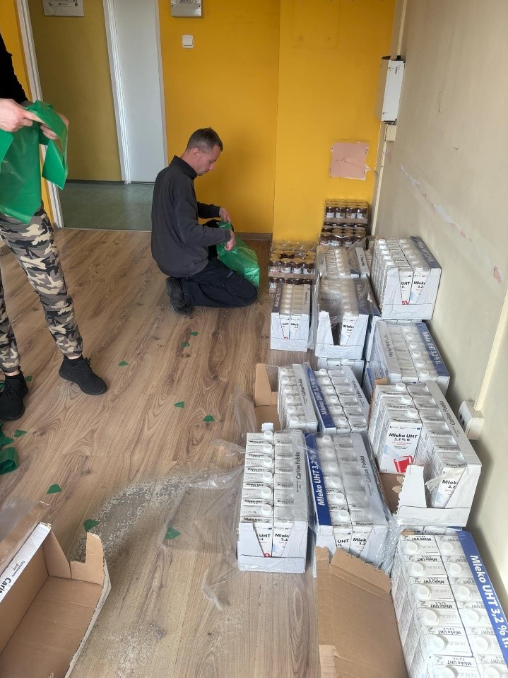 Pomoc w formie paczek żywnościowych trafi łącznie do 240 osób. Paczki zawierały 7 artykułów żywnościowych tj. szprotki, szynka drobiowa, mleko, szynka wieprzowa, pasztet wieprzowy, olej, mąka. Przy rozładunku żywności aktywnie pomagała Ochotnicza Straż Pożarna z Włosienicy. Bardzo dziękujemy za wsparcie w pomocy potrzebującym.