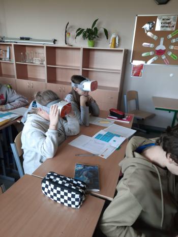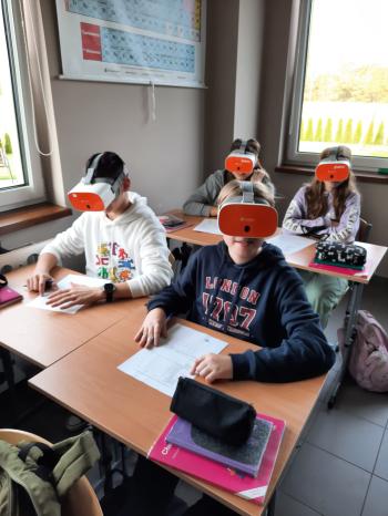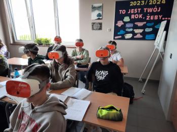 8 grudnia odbyło się w naszej szkole szkolenie dla rady pedagogicznej z obsługi okularów VR. Od tej pory zajęcia z wykorzystaniem okularów na stałe zagościły w naszej szkole na zajęciach z różnych przedmiotów. Sprzęt w ilości 12 szt. został zakupiony w ramach rządowego programu Laboratoria Przyszłości. Wirtualna rzeczywistość dostarcza uczniom niezapomnianych wrażeń.