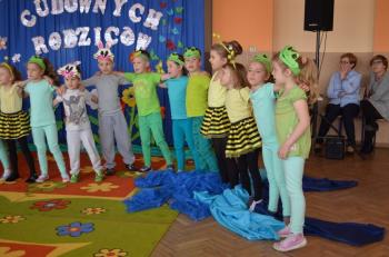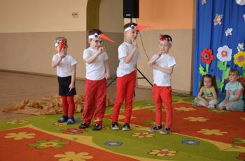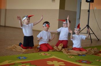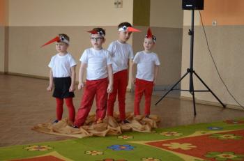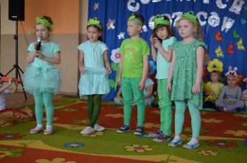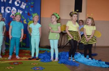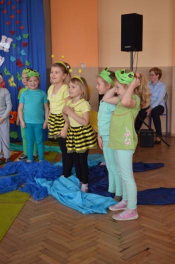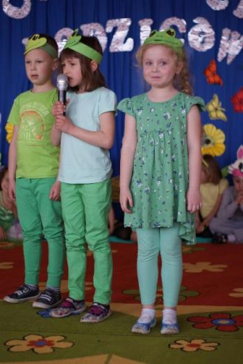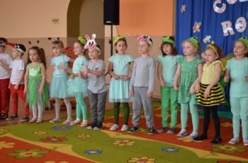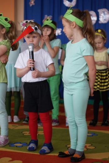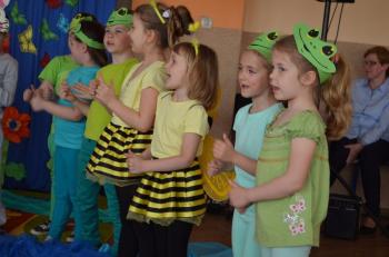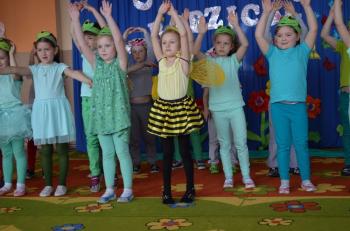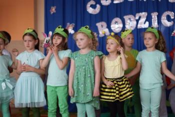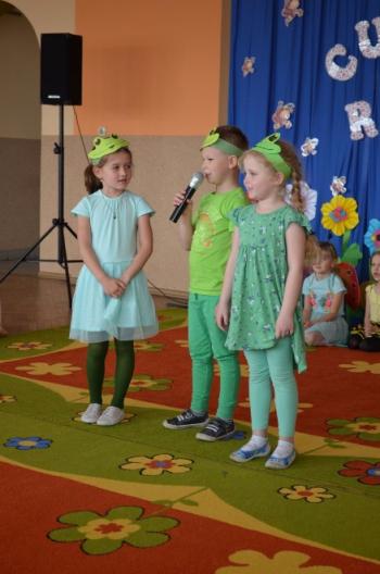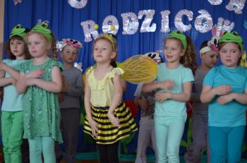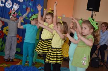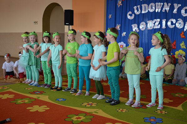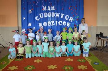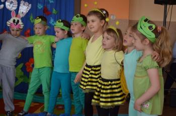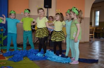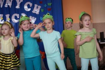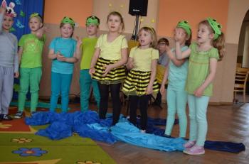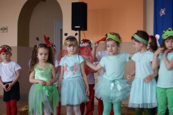 16.05.2017 dzieci z grupy „Jeżyki” spotkały się w remizie ze swoimi ukochanymi rodzicami, by świętować „Dzień mamy i taty”. Przedszkolaki programem artystycznym wyraziły wdzięczność najbliższym za ich miłość, opiekę i cierpliwość. Tegoroczny występ przybrał nietypową formę. Tym razem, dla odmiany, to dzieci rodzicom opowiedziały bajkę „O niegrzecznej żabce”. Mali aktorzy prezentowali swoje zdolności: recytatorskie, taneczne oraz wokalne, wcielając się w role: żabek, motyli, bocianów, zajączków, pszczółek. Zaproszeni goście ze skupieniem i uwagą przyglądali się losom bohaterów. Na końcu wybrzmiało istotne pouczenie: