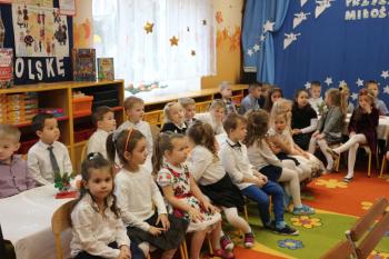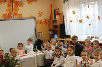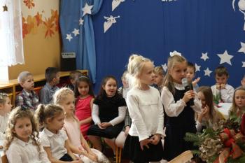 Odświętnie ubrane przedszkolaki oczekiwały zaproszonych gości.