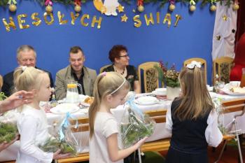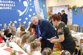 W tym roku świętowali z nami: wójt Gminy Oświęcim pan Mirosław Smolarek, radni Gminy Oświęcim pan Andrzej Ryszka oraz pan Zbigniew Krzemień, dyrektor Centrum Usług Wspólnych Gminy Oświęcim pani Halina Musiał, przewodnicząca Koła Gospodyń Wiejskich w Brzezince pani Alfreda Kufrej, przewodniczący Rady Rodziców pan Janusz Palka, przedstawicielka OSP w Brzezince pani Daria Szewczyk. Wszystkich serdecznie powitała pani dyrektor Jolanta Jędras.