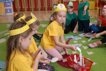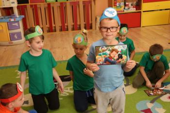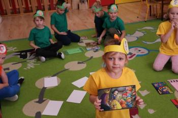 5 listopada, z okazji Międzynarodowego Dnia Postaci z Bajek, Kotki wzięły udział w bajkowym spotkaniu, podczas którego dowiedziały się jakie są etapy powstawania bajek, opowiadały o swoich ulubionych bajkowych bohaterach. . Były zabawy wymagające wykazania się znajomością treści bajek, tych znanych i mniej znanych, m.in. dzieci rozwiązywały zagadki, przyporządkowały ilustracje do odpowiedniej bajki.. Dzieci bardzo dobrze znają bajki i świetnie radziły sobie z zadaniami. Każde dziecko narysowało swoją ulubioną postać bajkową.