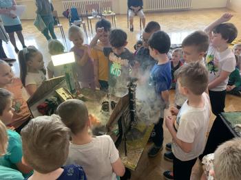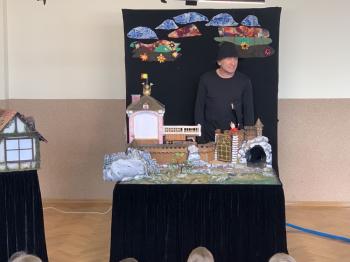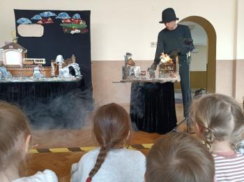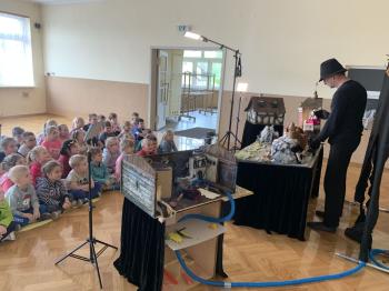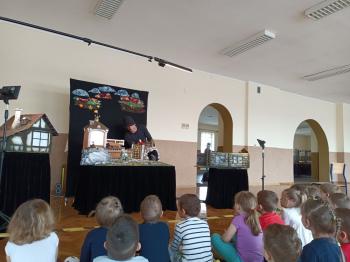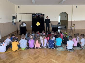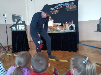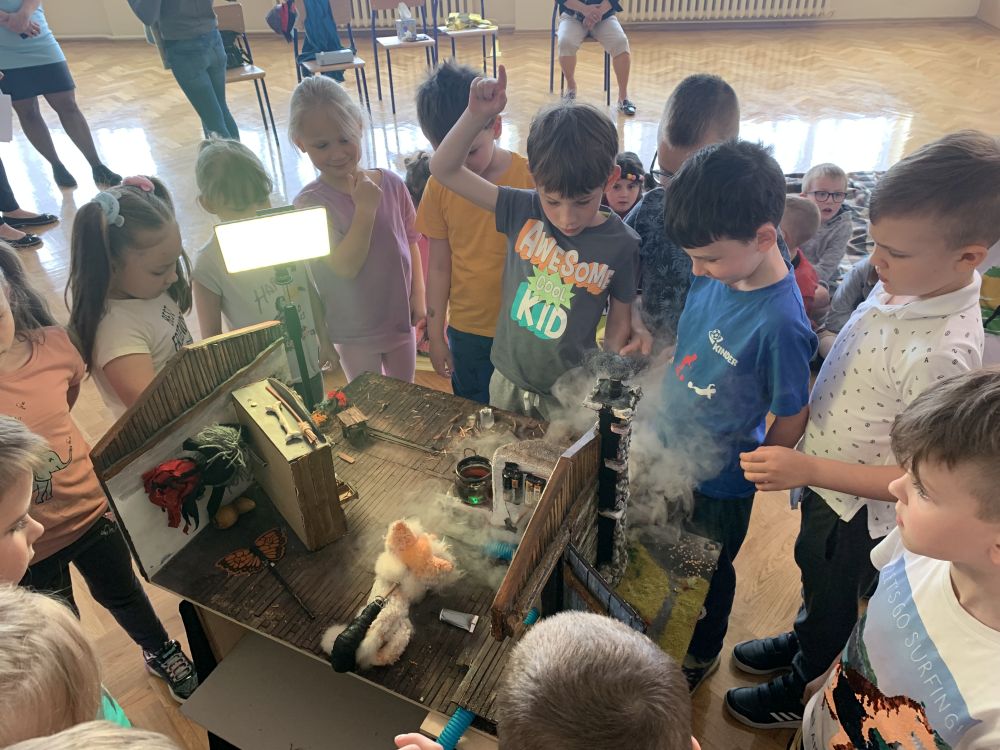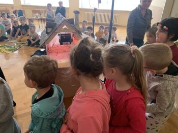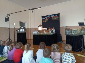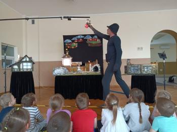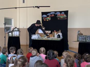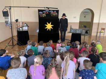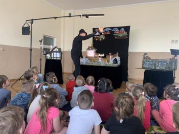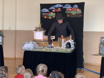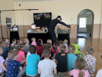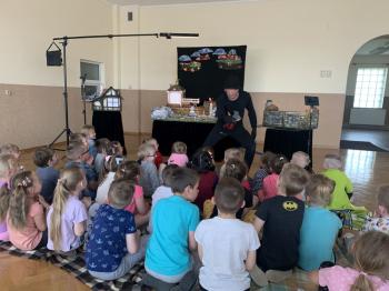 13 maja przedszkolaki wybrały się do OSP na teatrzyk kukiełkowy Alpmim, gdzie mogły podziwiać wspaniałe przedstawienie pt,,Baśń o chłopcu, który strach pokonał”.