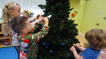 We środę 14 grudnia Biedroneczki ubierały choinkę. Z radością zakładały ozdoby, upieczone pierniczki, wykonany wspólnie łańcuch oraz słodycze. Ubrana choinka to znak, że święta tuż, tuż.