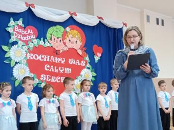 Z okazji Dnia Babci i Dziadka przedszkolaki z grupy Jeżyki przygotowały program artystyczny. Wierszykami i piosenką chciały jak najlepiej wyrazić swoją miłość oraz wdzięczność za opiekę jaką obdarzają swoje wnuczęta babcia i dziadek. Serdecznie dziękujemy za obecność wszystkim zaproszonym gościom i życzymy długich lat życia.
