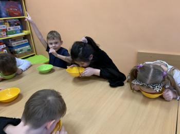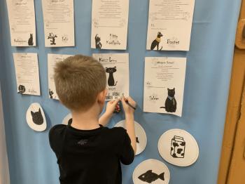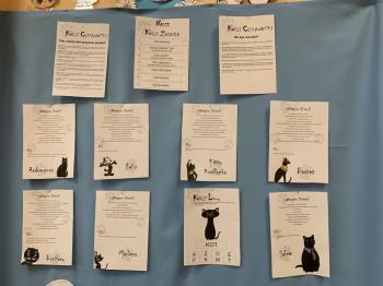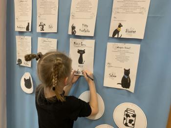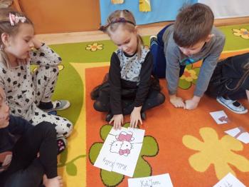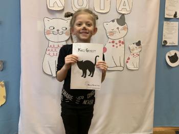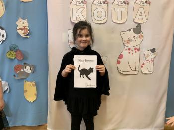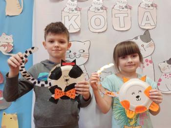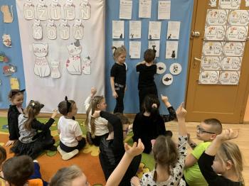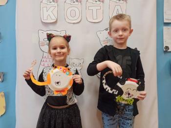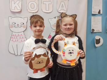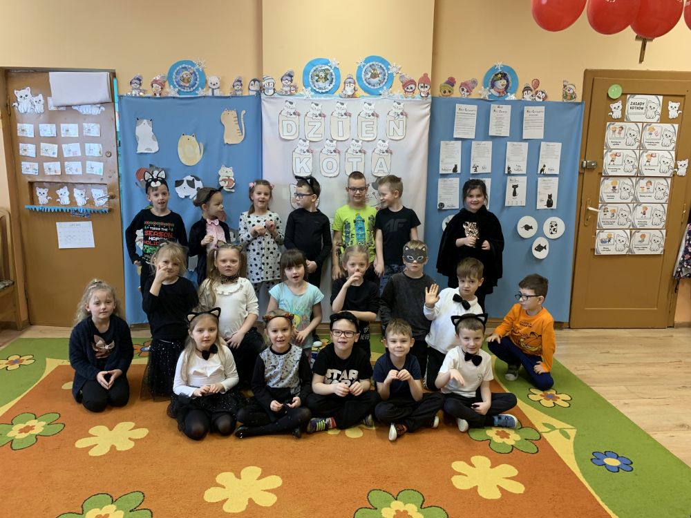 ,,Kotki” na Dzień Kota upodobniły się do swoich czworonożnych przyjaciół, przebierając się. Zapoznały się również z ciekawostkami dotyczącymi czarnych kotów i przesądów z nimi związanych. Poznały kilka czarnych kotów takich jak Rademenes, który wprowadził dzieci do zabawy oraz innych kotów mniej lub bardziej znanych. Były też „kocie zabawy”, takie jak: koci spacerek, rozwiązywanie zagadek, wykonywanie różnorodnych prac plastycznych, recytowanie wierszy i śpiewanie kocich piosenek oraz picie mleczka z miseczki.