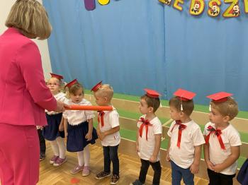 3 listopada odbyła się w grupie Biedronek uroczystość pasowania na przedszkolaka. Wzięły w niej udział najmłodsze przedszkolaki z naszego przedszkola, dyrektor Zespołu Szkolno - Przedszkolnego w Brzezince - Pani Beata Herman oraz panie pracujące w grupie Biedronek. Dzieci zaprezentowały wiersze, piosenki i tańce, które poznały w przedszkolu, a po po złożeniu ślubowania otrzymały z rąk Pani Dyrektor uroczyste pasowanie. Na pamiątkę tego ważnego wydarzenia w życiu każdego przedszkolaka dzieci otrzymały dyplomy i drobne upominki.