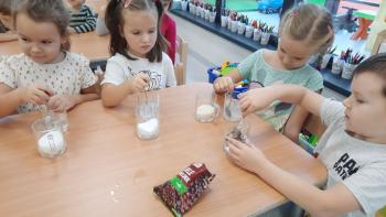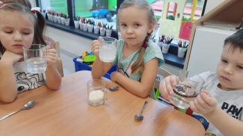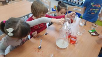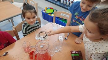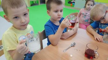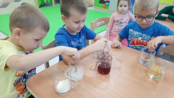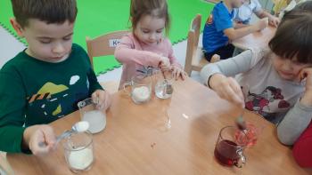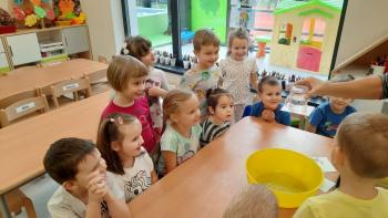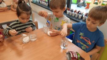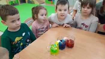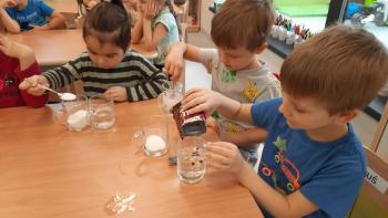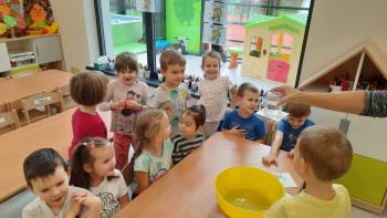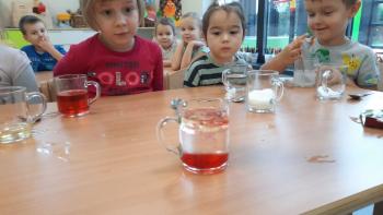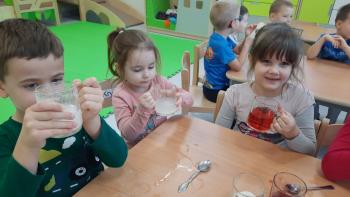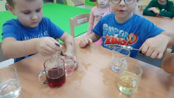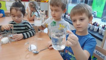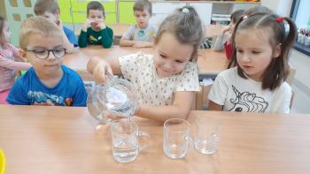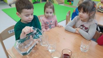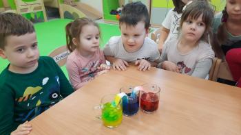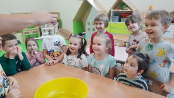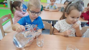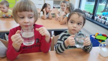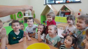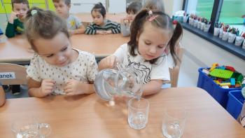 W trakcie realizacji zajęć z zakresu edukacji przyrodniczej Jeżyki dowiedziały się, w jaki sposób powstaje deszcz, opisywały deszczową jesienną pogodę, wykonywały kilka prac plastycznych związanych z deszczem. W kolejnym dniu zajęć Jeżyki wykonywały i obserwowały doświadczenia z wodą. Zabawy te wzbudziły chęć działania oraz duże zainteresowanie u dzieci.