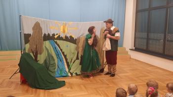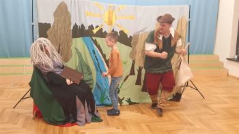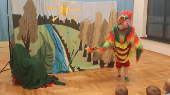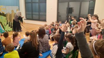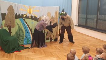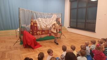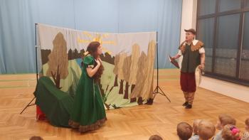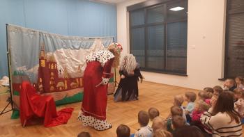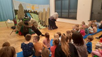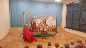 29 lutego nasze przedszkolaki oglądnęły przedstawienie "Królestwo Wesołuszka" w wykonaniu aktorów z teatru Skrzat z Krakowa. Dzieci z ciekawością oczekiwały na uwolnienie uwięzionej księzniczki. Mądra sowa, Grześ i pomocnik Leon z grupy Kotki za pomocą fletu i księgi zaklęć uwolnili księżniczkę. Dzieci aktywnie uczestniczyły w przedstwieniu, a za występ nagrodziły aktorów brawami.