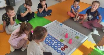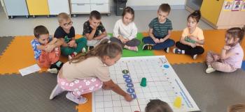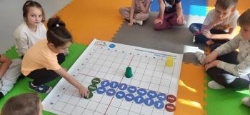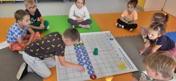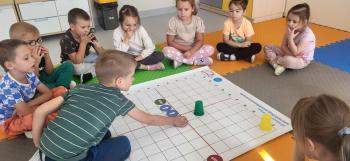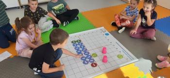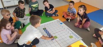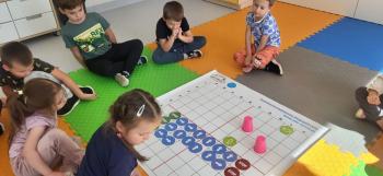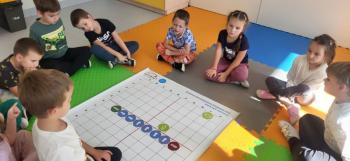 "Tworzymy pierwszy kod" to temat kolejnych zabaw z kodowaniem w grupie Kotki. Podszas zabawy "Znajdź drogę do..."dzieci poznały używane do tworzenia skryptów znaki i symbole: start, stop, strzałki kierunkowe - w prawo, w lewo, do góry, na dół. W trakcie zabawy Kotki dostrzegły wiele możliwości dojścia do celu i wiele sposobów ułożenia różnych, poprawnych skryptów.