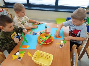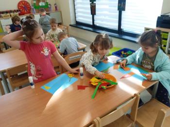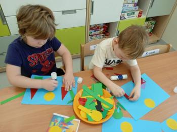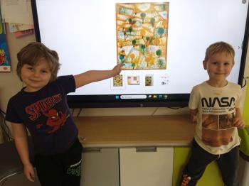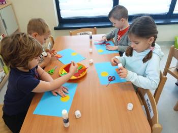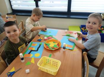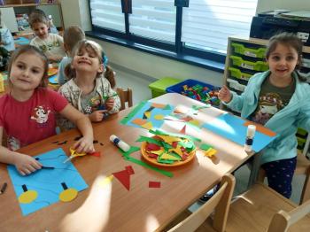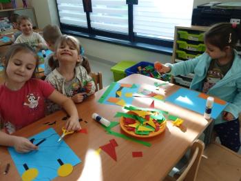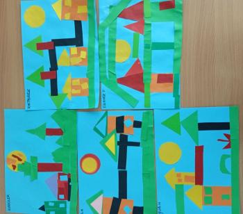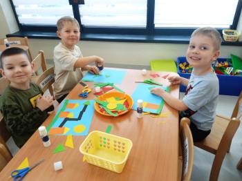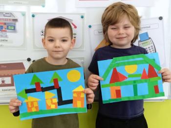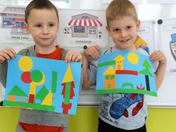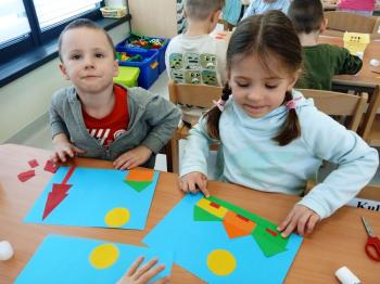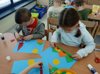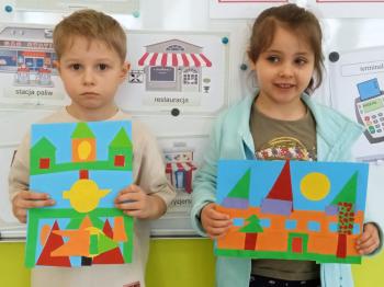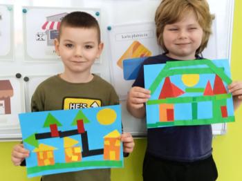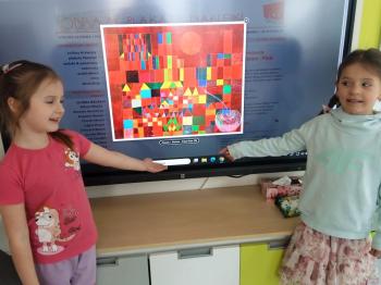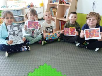 Jeżyki w ramach zadania marcowego z projektu ,,Zabawa sztuką'' poznały obrazy Paula Klee, malarza i grafika zafascynowanego kolorem i światłem. Zainspirowane jego dziełami dzieci wykonały swoje prace pt. ,,Geometryczny pejzaż''