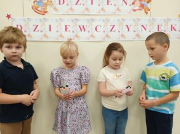 10 października dziewczynki z grupy Kotki obchodziły Dzień Dziewczynek . Z tej okazji chłopcy składali dziewczynkom życzenia oraz wręczali upominki.