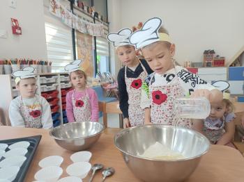 Dziewczynki grupy Rybki obchodziły swoje święto "Dzień dziewczyny". W tym dniu chłopcy jak prawdziwi dżentelmeni złożyli swoim koleżankom życzenia oraz wręczyli upominki. Dzieciom towarzyszyła muzyka i zabawy. Dodatkowo cała grupa piekła pyszne babeczki dekorując kolorowymi posypkami. Serdecznie dziękujemy rodzicom za przygotowanie upominków.